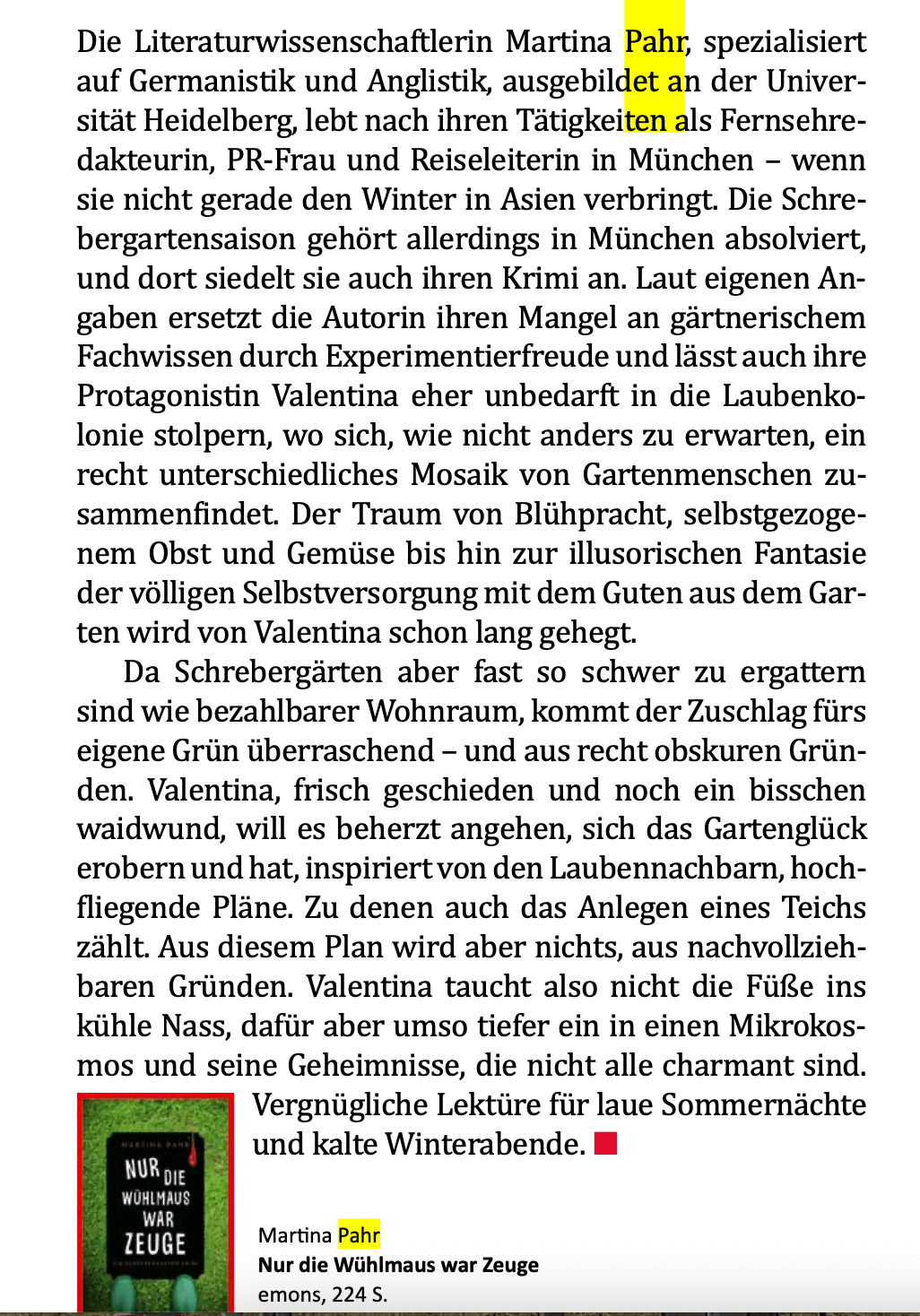 Von Wühlmäusen (und Menschen): eine freundliche Vorstellung des ersten Schrebergartenkrimis