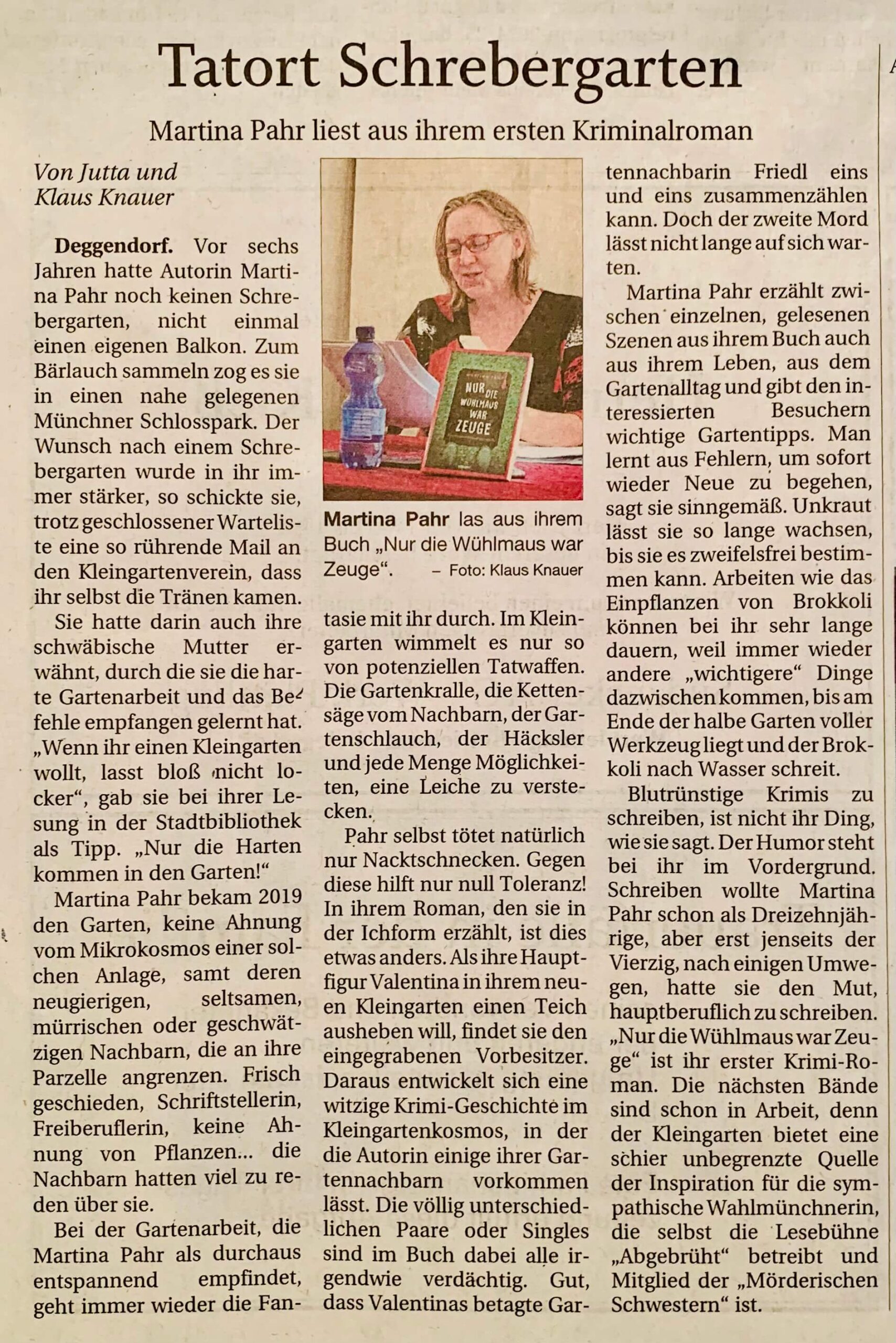 Ein wunderbarer Artikel der Schreberkollegen und Lokalreporter Knaur nach einer Lesung